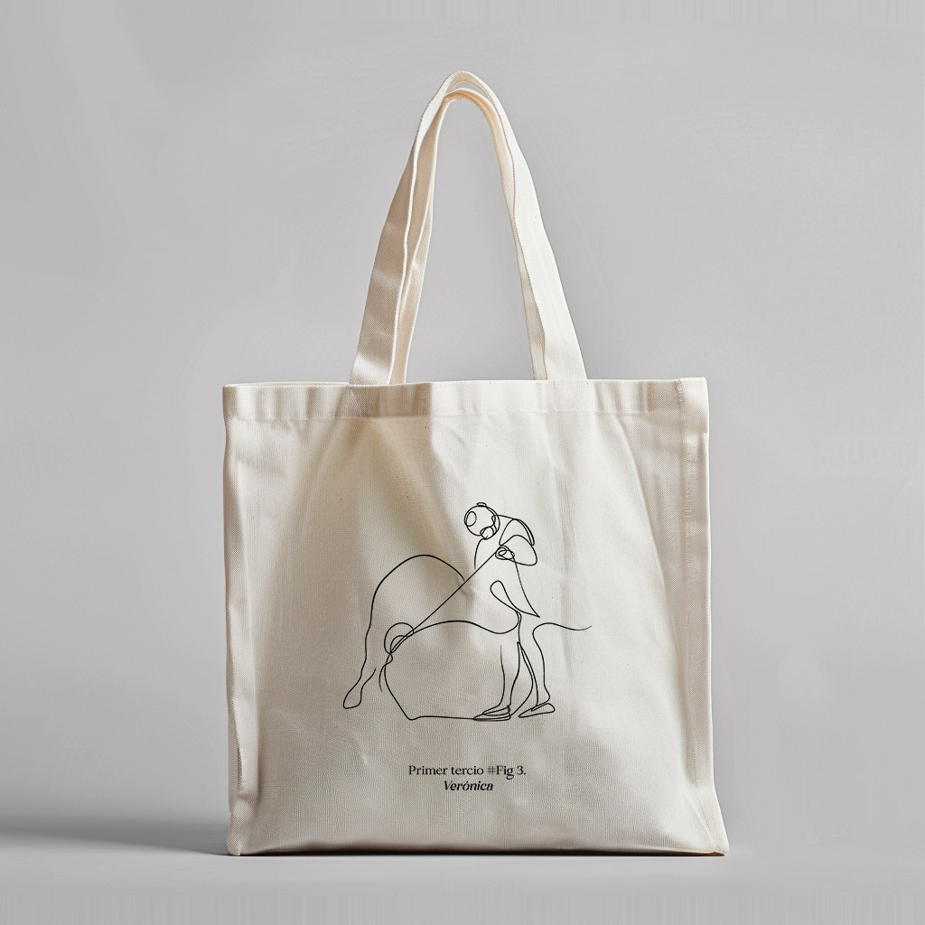 Totebag con PUERTA GRANDE en la cara principal, tipografía con estilo y mucho carácter, y en la parte trasera una ilustración a trazo de una verónica.